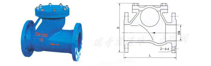 球形滑道止回閥采用橡膠包皮滾球為閥瓣,在介質的作用下,可在閥體內的整體式滑道上作上下左右滾動,從而打開或關閉閥門。消聲式關閉,不產生水錘,密封性能好。閥體采用全水流通道,流量大,阻力小,水頭損失比旋啟式小50%。水平或垂直安裝均可,可用于冷水、熱水、工業及生活用水管網系統中,更適應用潛水排水污泵,介質溫度為080℃。
