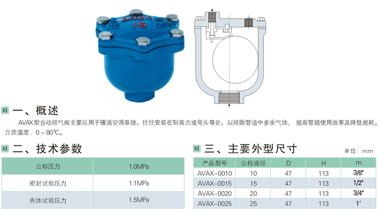 在一般情況下,水中約含2VOL%的溶解空氣,主輸水過程中,這些空氣由水中不斷地釋放出來,聚集在管線的高點處,形成空氣袋(AIR POCKET),使輸水變得困難,系統的輸水能力可因此下降約5-15%。此微量排氣閥主要功能就是排除這2VOL%的溶解空氣,并適合裝置于高層建筑,廠區內配管,小型泵站用以保護或改善系 統的輸水效率及節約能源。