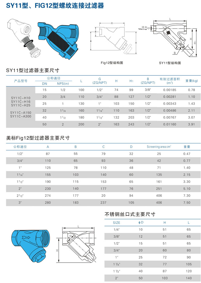 不銹鋼螺紋Y型過濾器是輸送介質的管道系統不可缺少的一種裝置,通常安裝在減壓閥、泄壓閥、定水位閥或其它設備的進口端,用來清除介質中的阿質,以保護閥門及設備的正常使用。該過濾器具有結構先進,阻力小,排污方便等特點。適用介質為水、油、氣。一般通水網為18-30目/cm2,通氣網為40-100目cm2,通油網為100-480目/cm2。可按用戶要求制作濾網。