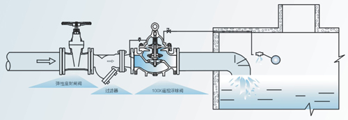 到設定的高度時,主閥由浮球導閥控制關閉進水口停止供水;當水位下降后,主閥由浮球導閥開關控制打開進水